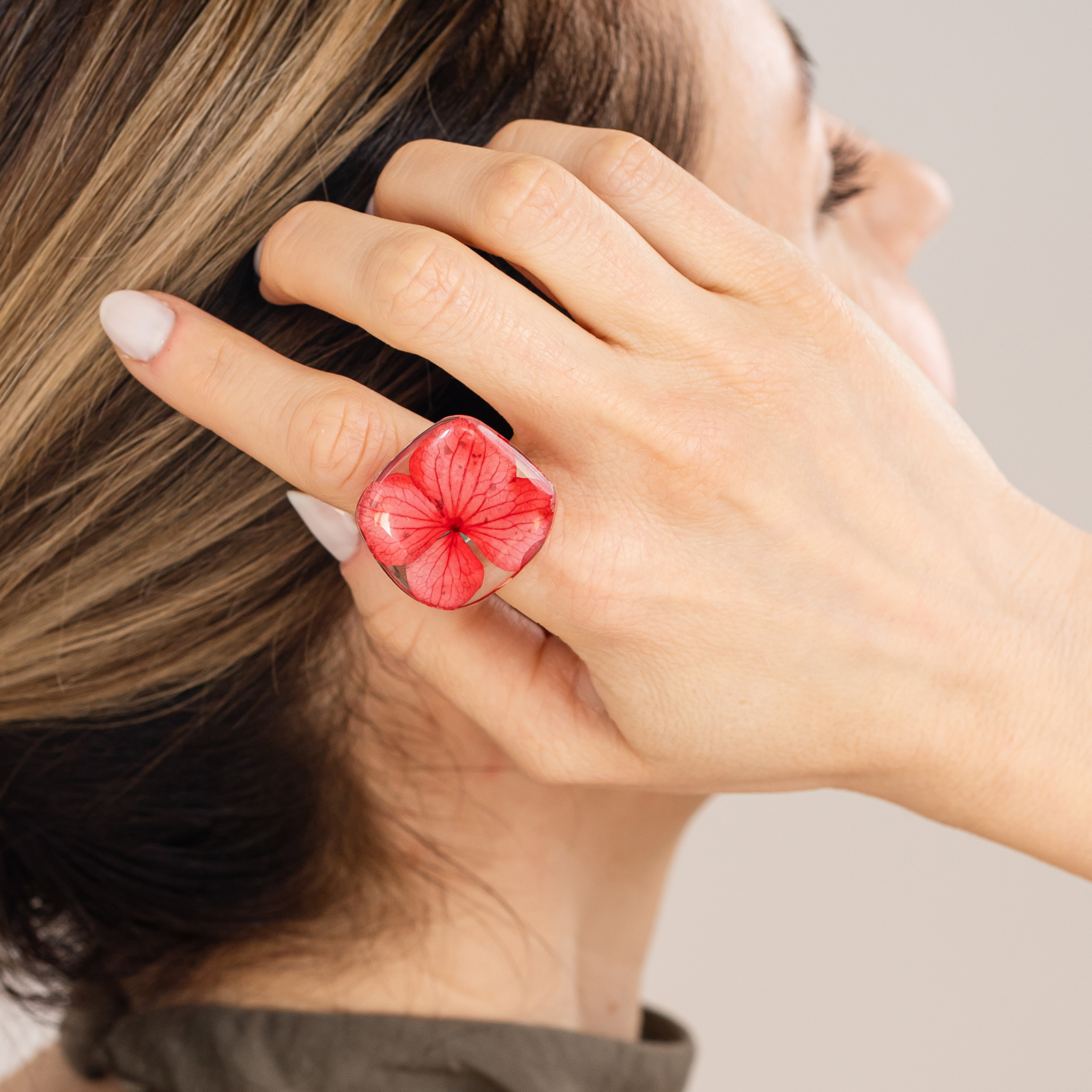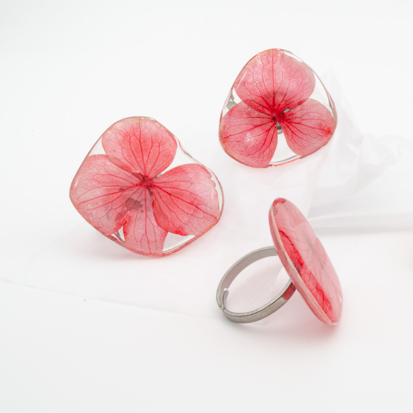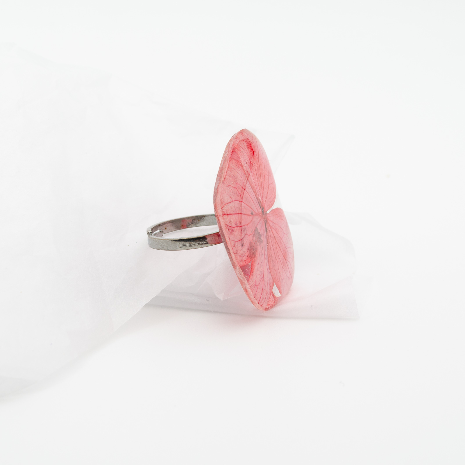 BOLD - Inel supradimensionat cu o hortensie roșie in formă proprie