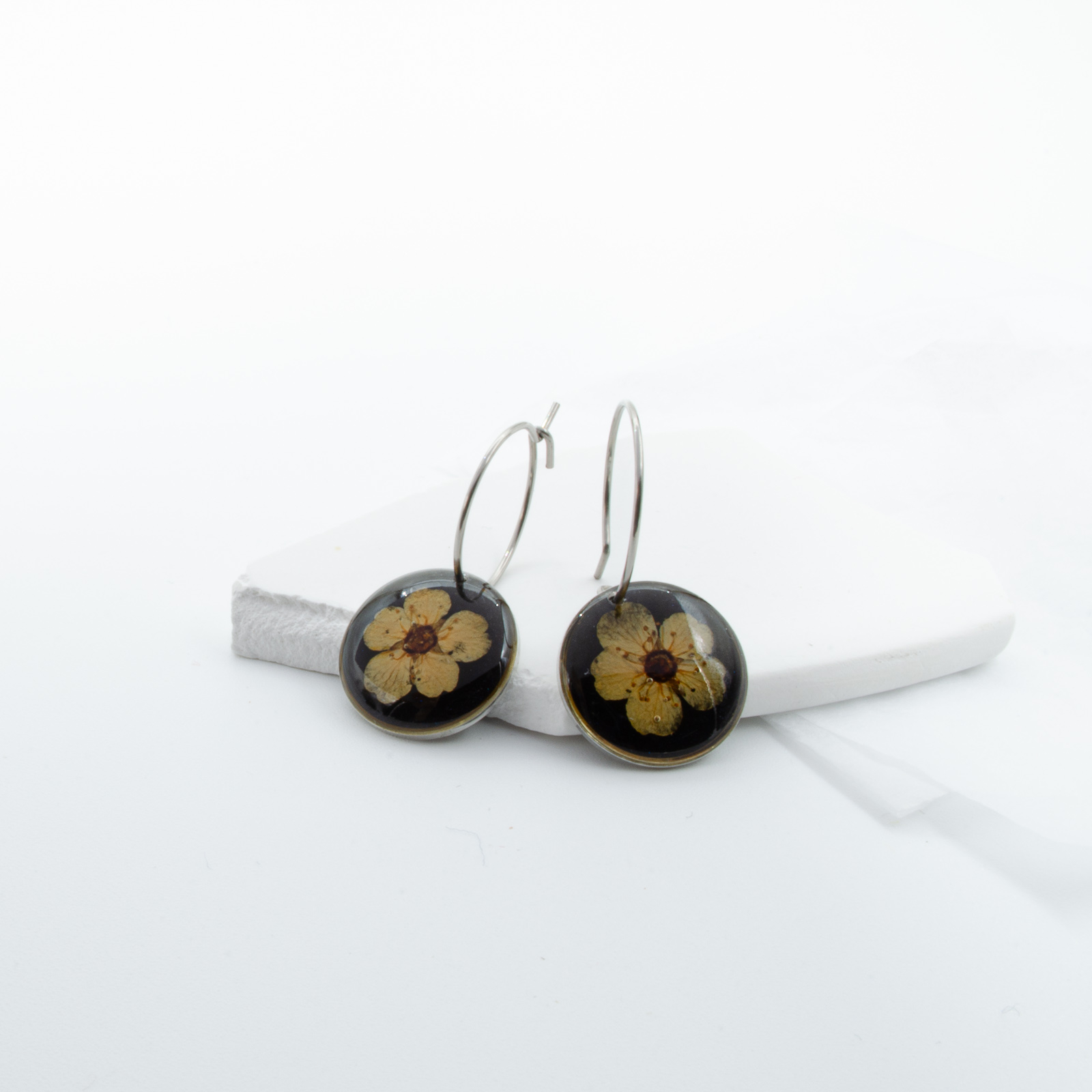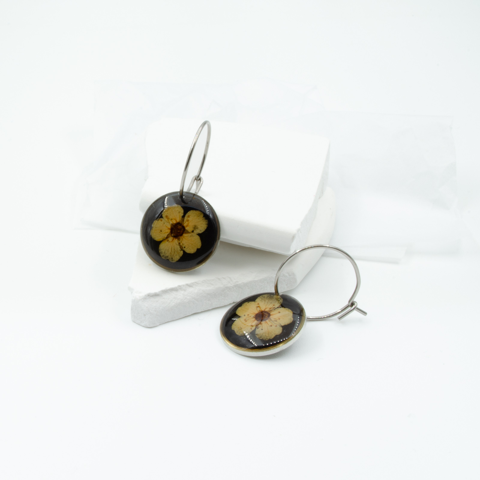 • Materiale: floare naturală, rășină specială pentru bijuterii, oțel inoxidabil