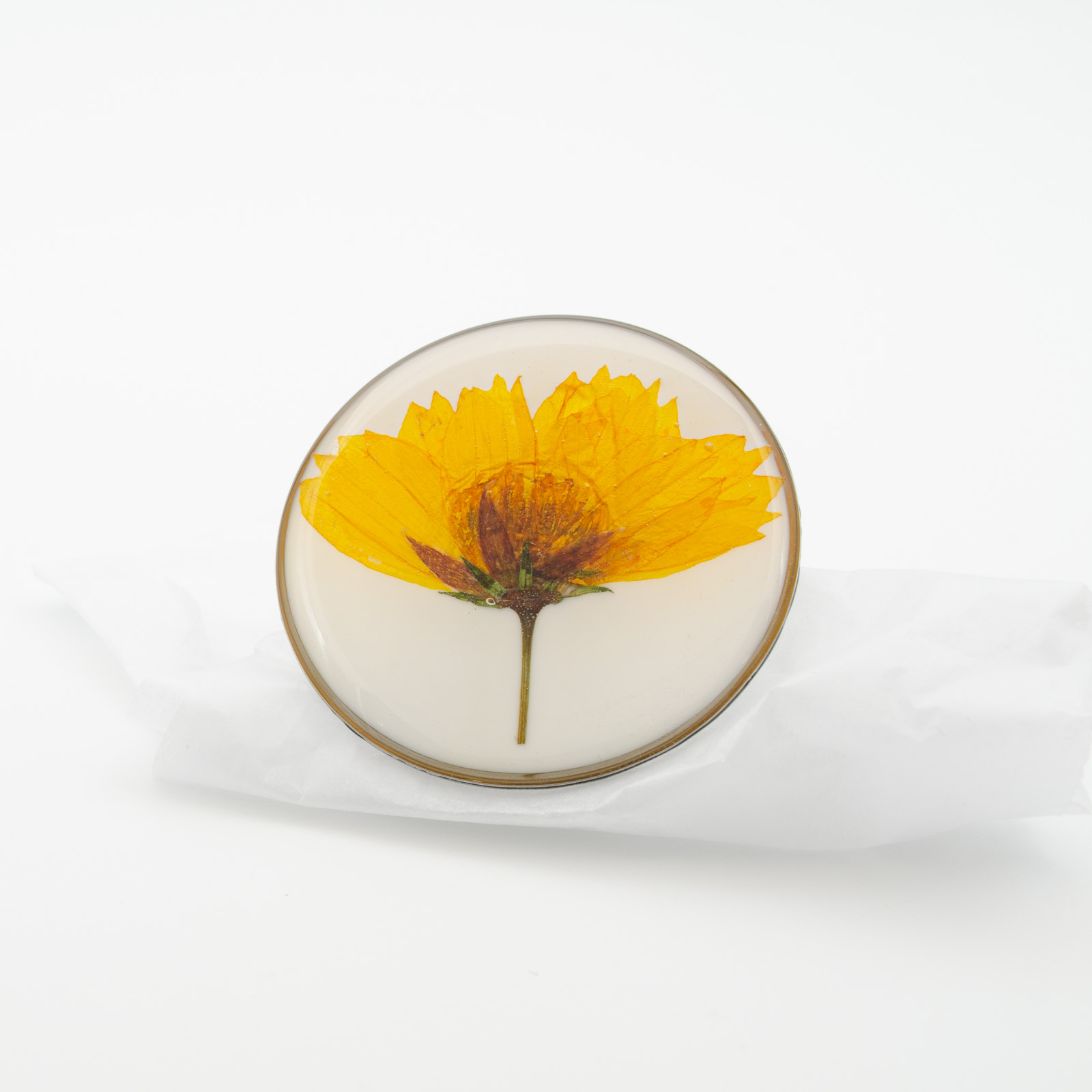 Pentru că floarea de coreopsis (numele florii galbene) simbolizează bucuria pură și prietenia sinceră. Iar în acest inel, pare că a prins viață chiar în mijlocul unei dimineți senine.