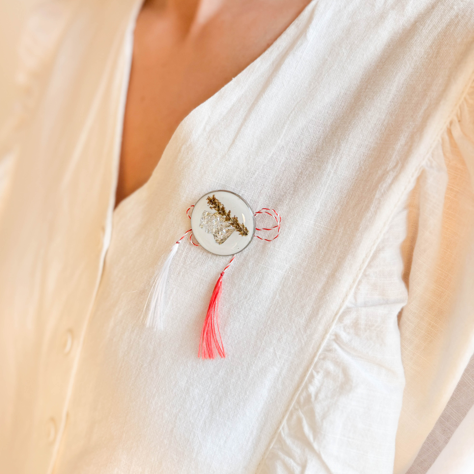 Este un mărțișor-bijuterie gândit ca accent de purtat tot anul. Funcționează ca detaliu elegant pe un sacou, un palton sau o piesă simplă, unde aduce textură și profunzime fără să iasă în față. Delicat, dar memorabil.