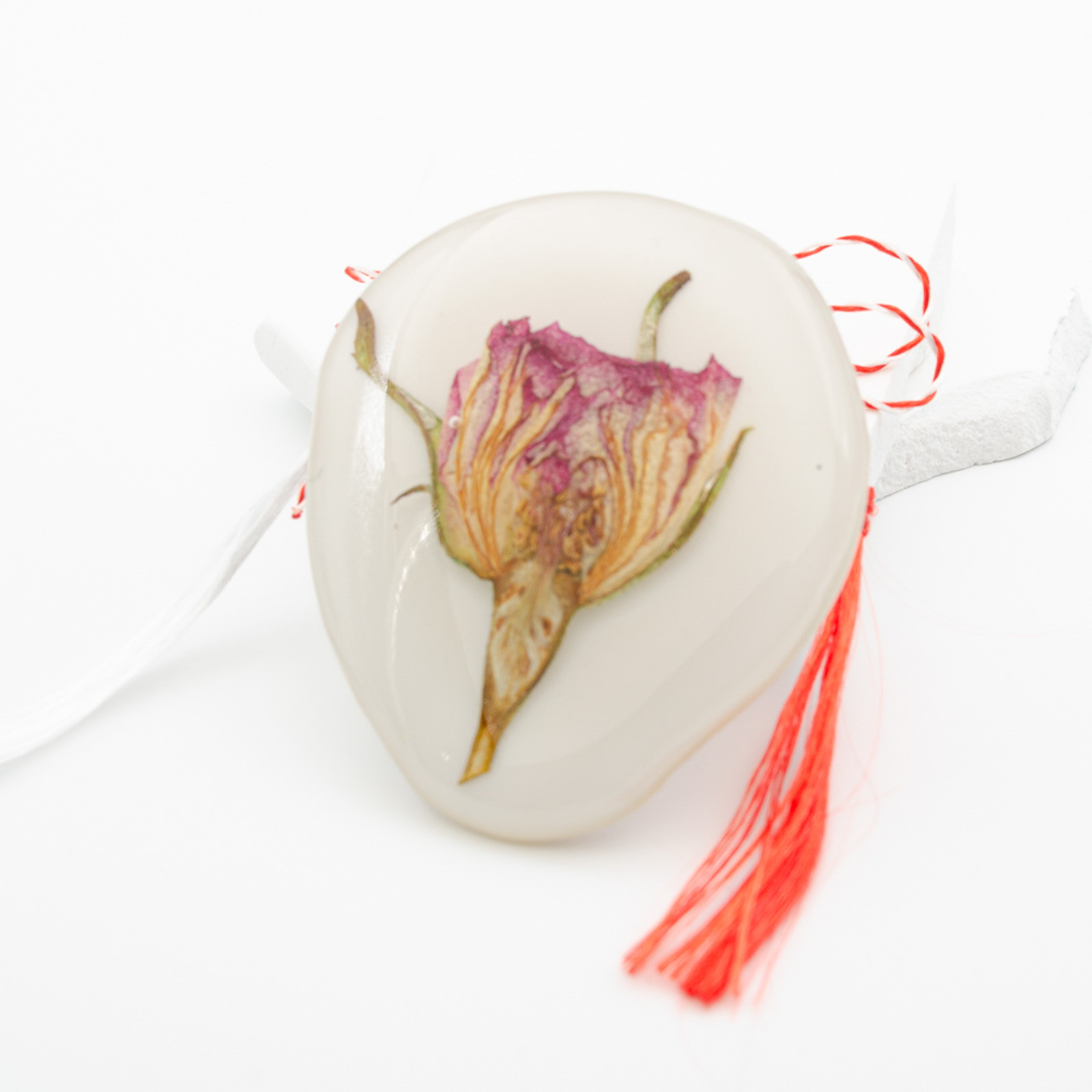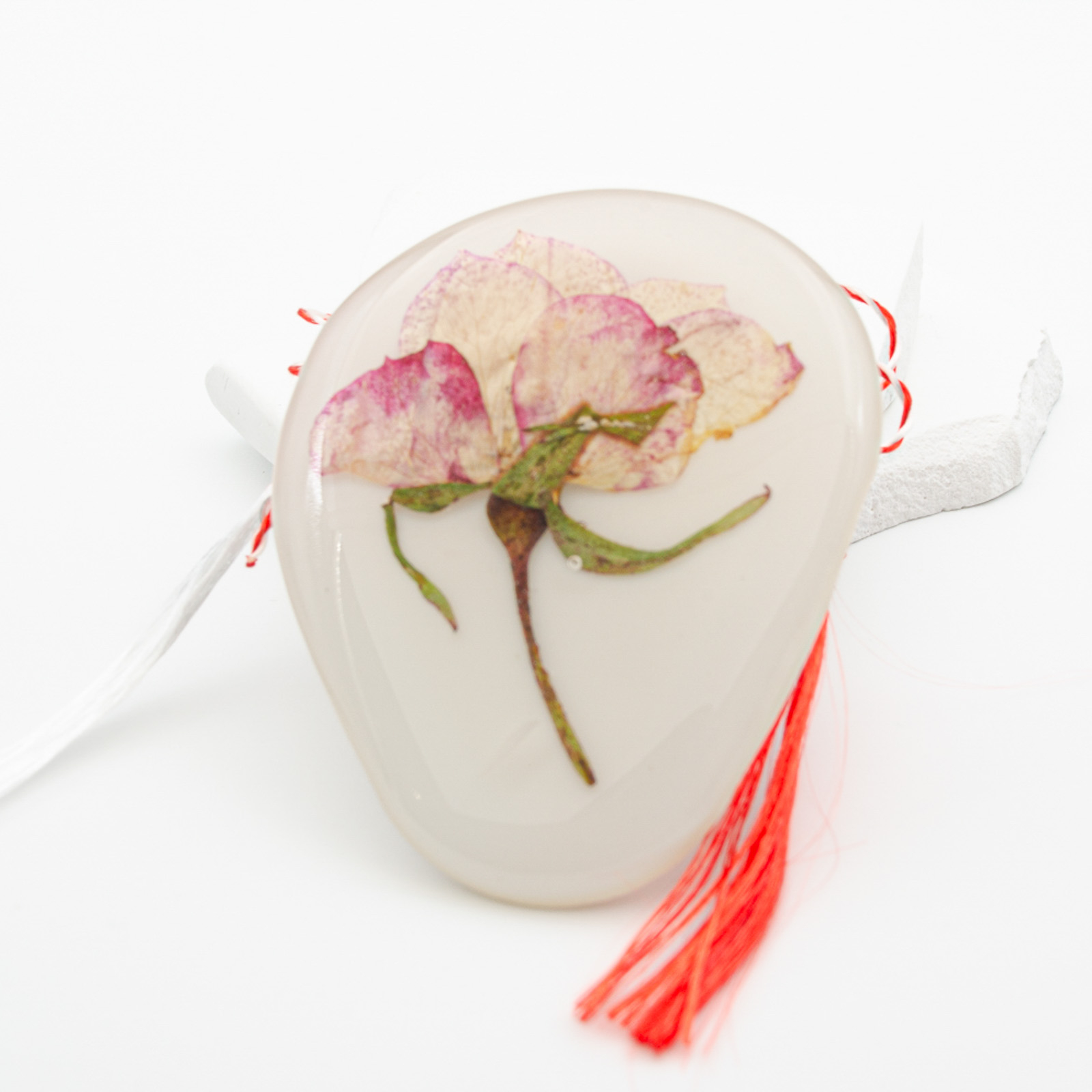 • Materiale: floare naturală, rășină specială pentru bijuterii, oțel inoxidabil
