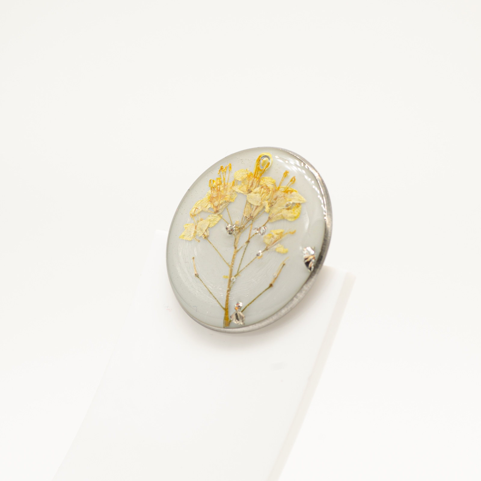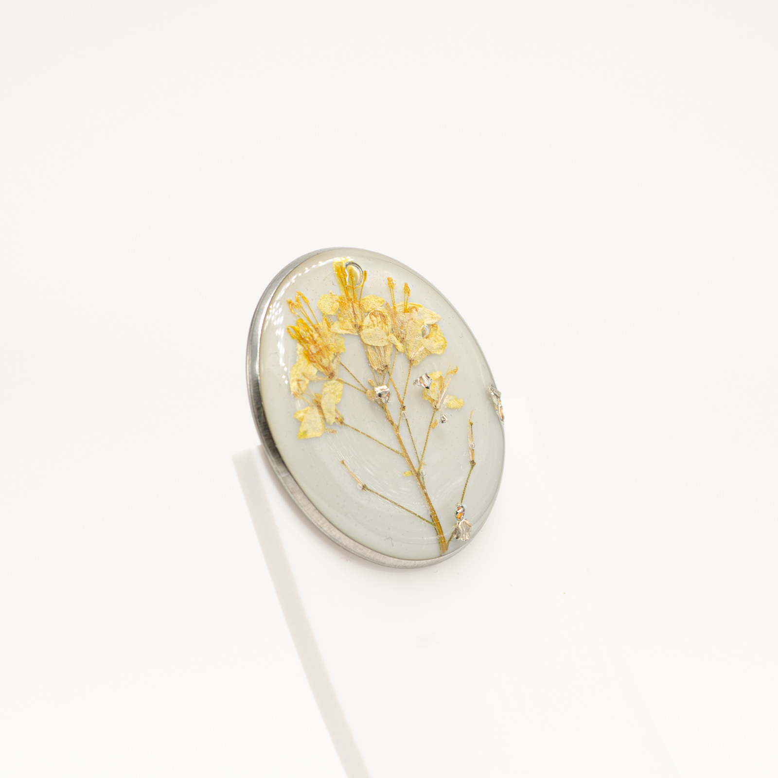• Materiale: floare naturală, rășină specială pentru bijuterii, oțel inoxidabil
